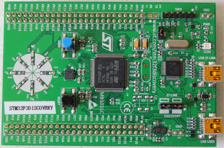 Эта книга будет использовать плату разработки STM32F3DISCOVERY от STMicroelectronics для большинства примеров. Эта плата основана на архитектуре ARM Cortex-M, и хотя базовая функциональность одинакова для большинства CPU на этой архитектуре, периферийные устройства и другие детали реализации микроконтроллеров отличаются между разными производителями и даже между семьями микроконтроллеров от одного производителя.